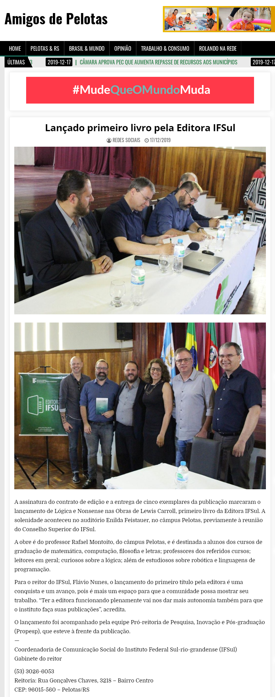 Amigos de Pelotas - Lançado primeiro livro pela Editora IFSul