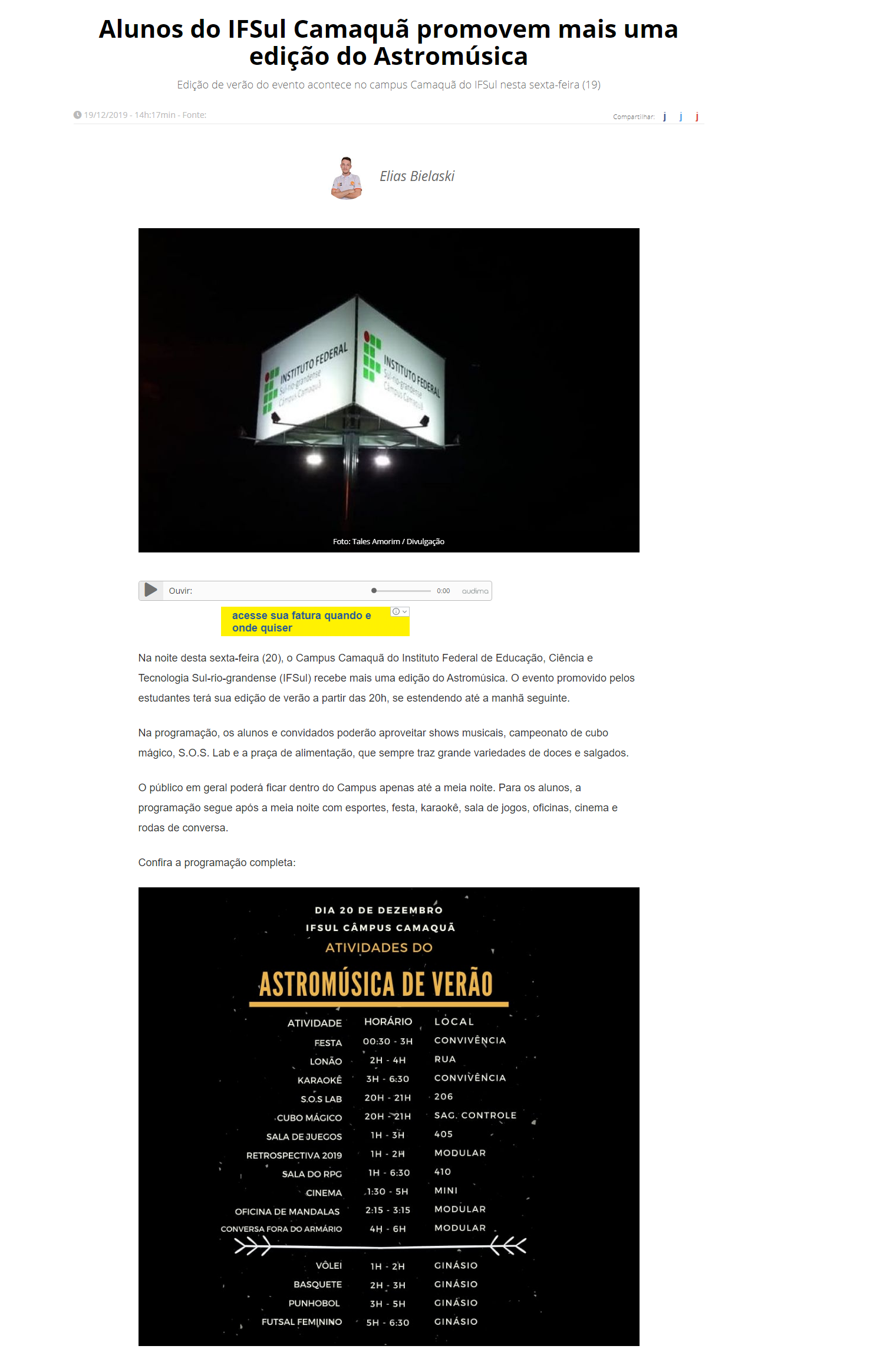 Clic Camaquã - Alunos do IFSul Camaquã promovem mais uma edição do Astromúsica