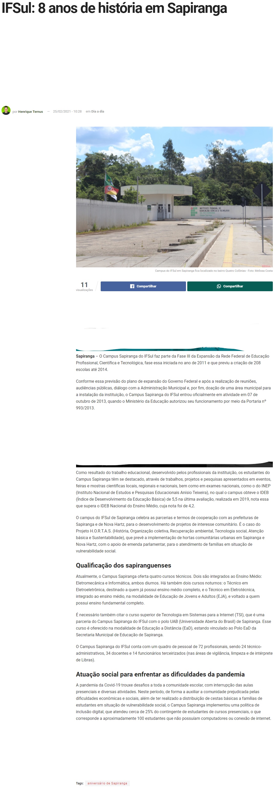 Jornal Repercussão - IFSul: 8 anos de história em Sapiranga