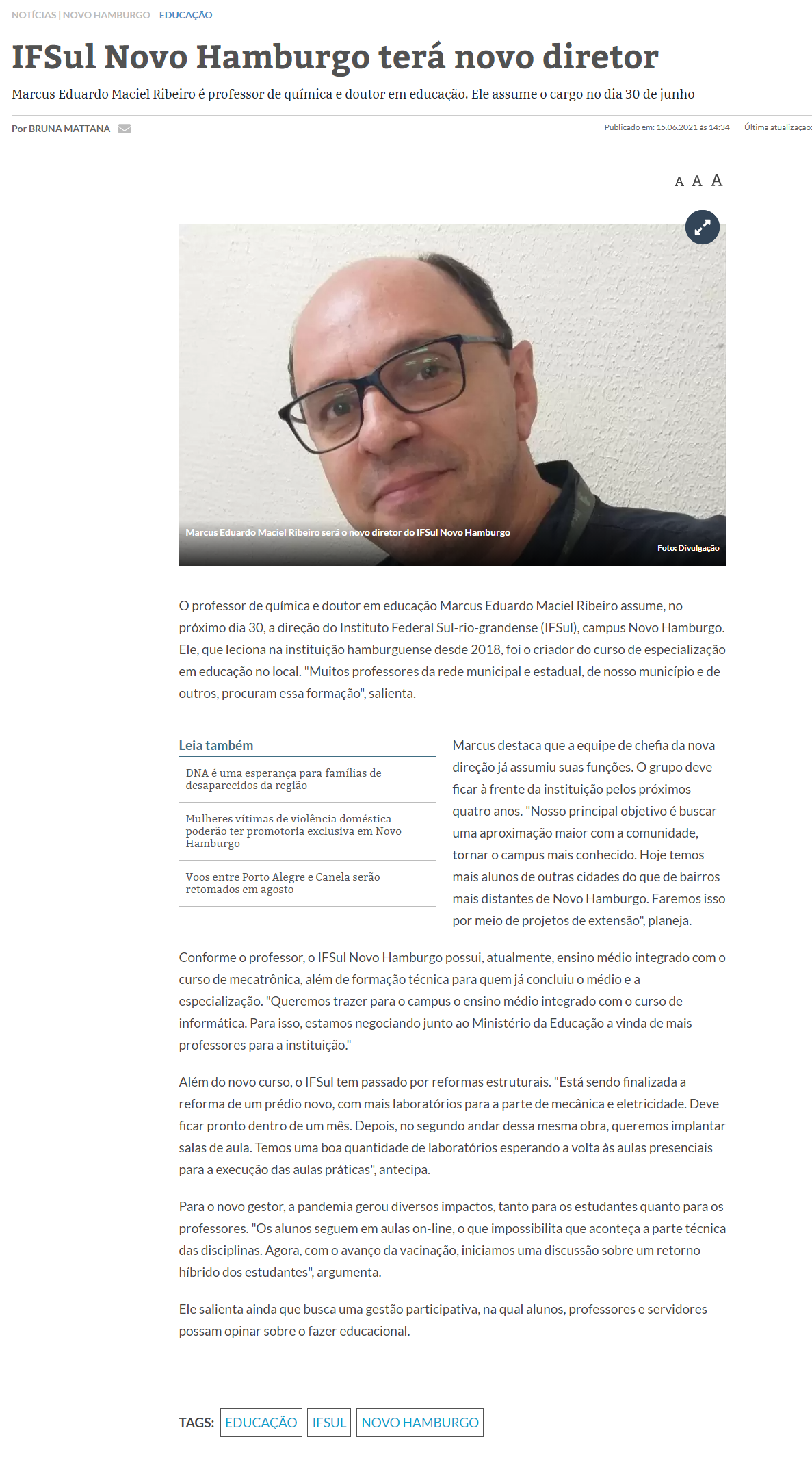 Notícias Novo Hamburgo - IFSul Novo Hamburgo terá novo diretor