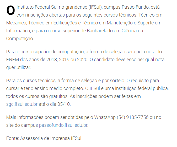 Rádio Tapejara - IFSul abre vagas para cursos técnicos e superior