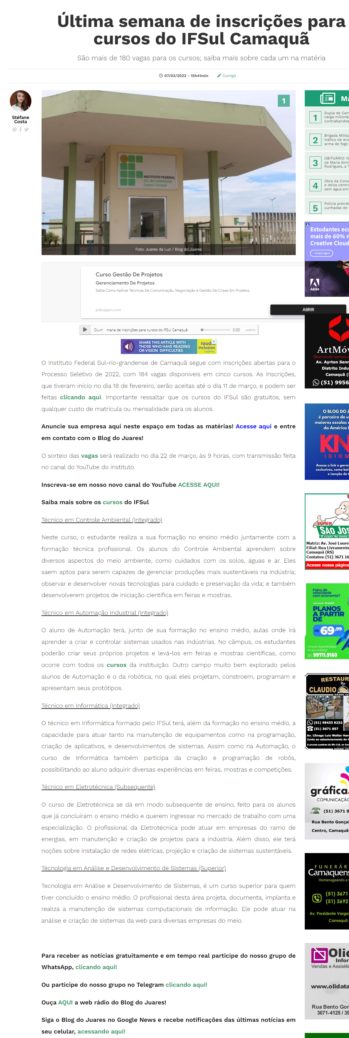 Blog do Juares - Última semana de inscrições para cursos do IFSul Camaquã