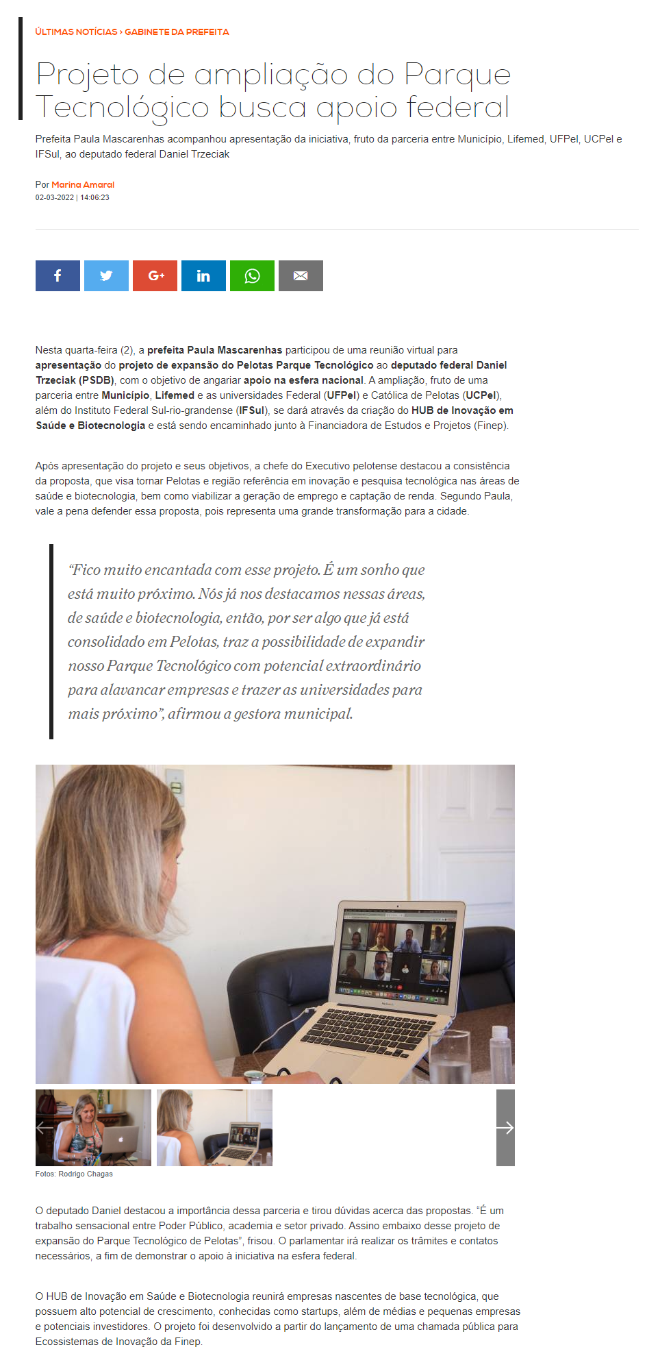 Prefeitura Municipal de Pelotas - Projeto de ampliação do Parque Tecnológico busca apoio federal