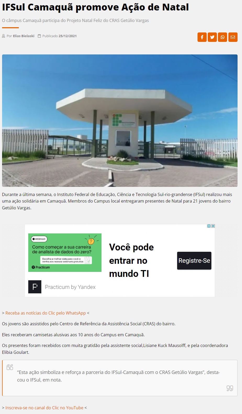 Clic Camaquã - IFSul Camaquã promove Ação de Natal
