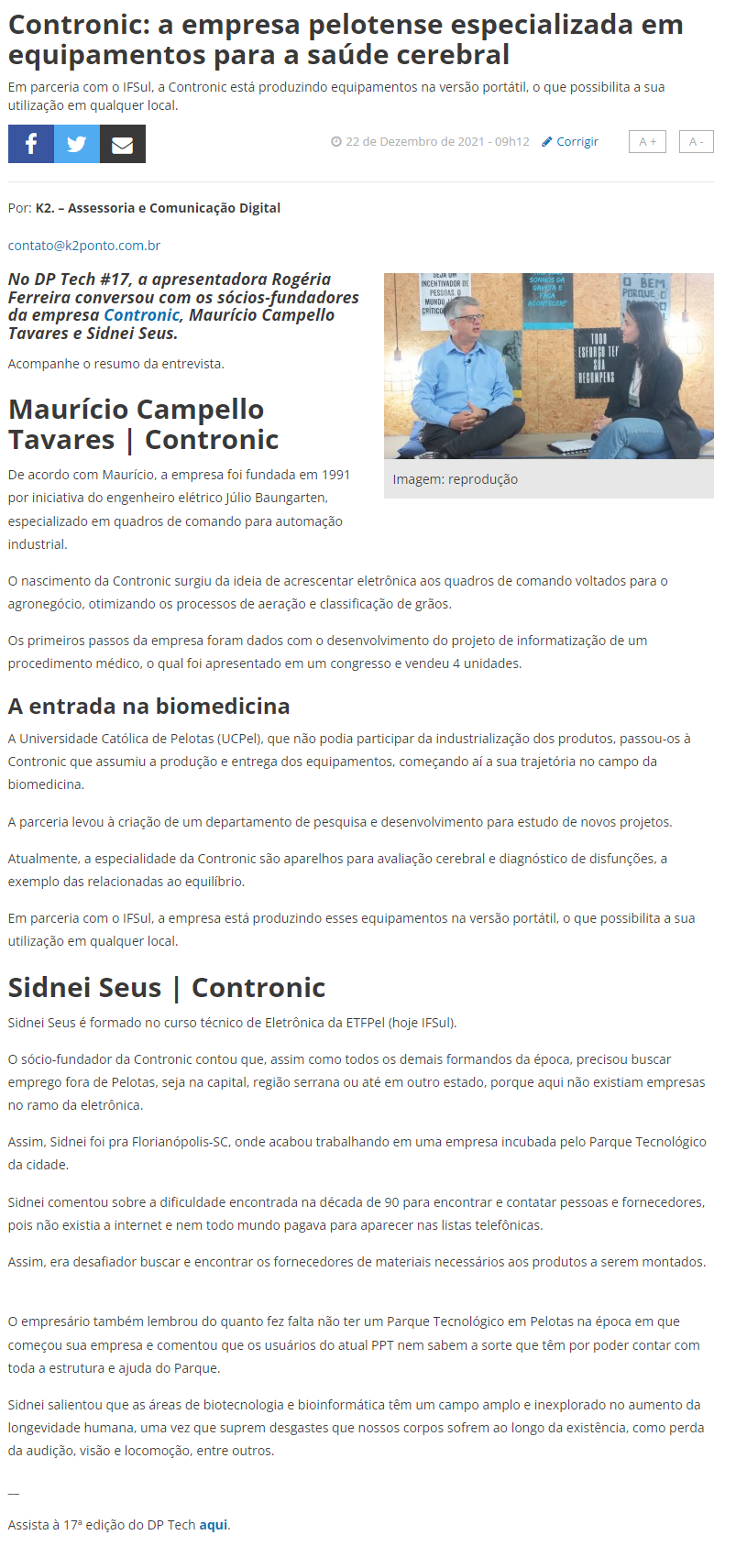 Diário Popular - Contronic: a empresa pelotense especializada em equipamentos para a saúde cerebral