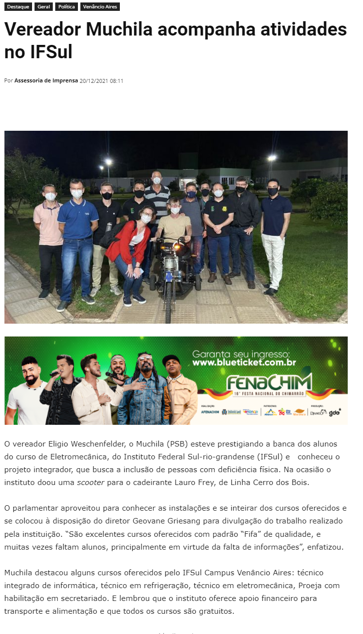 Portal RVA - Vereador Muchila acompanha atividades no IFSul