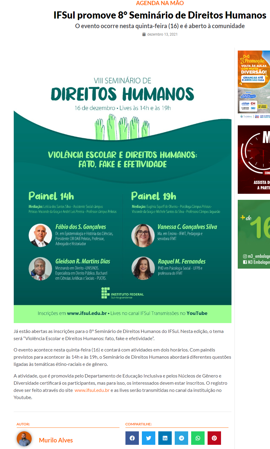 Lince Comunicação - IFSul promove 8º Seminário de Direitos Humanos
