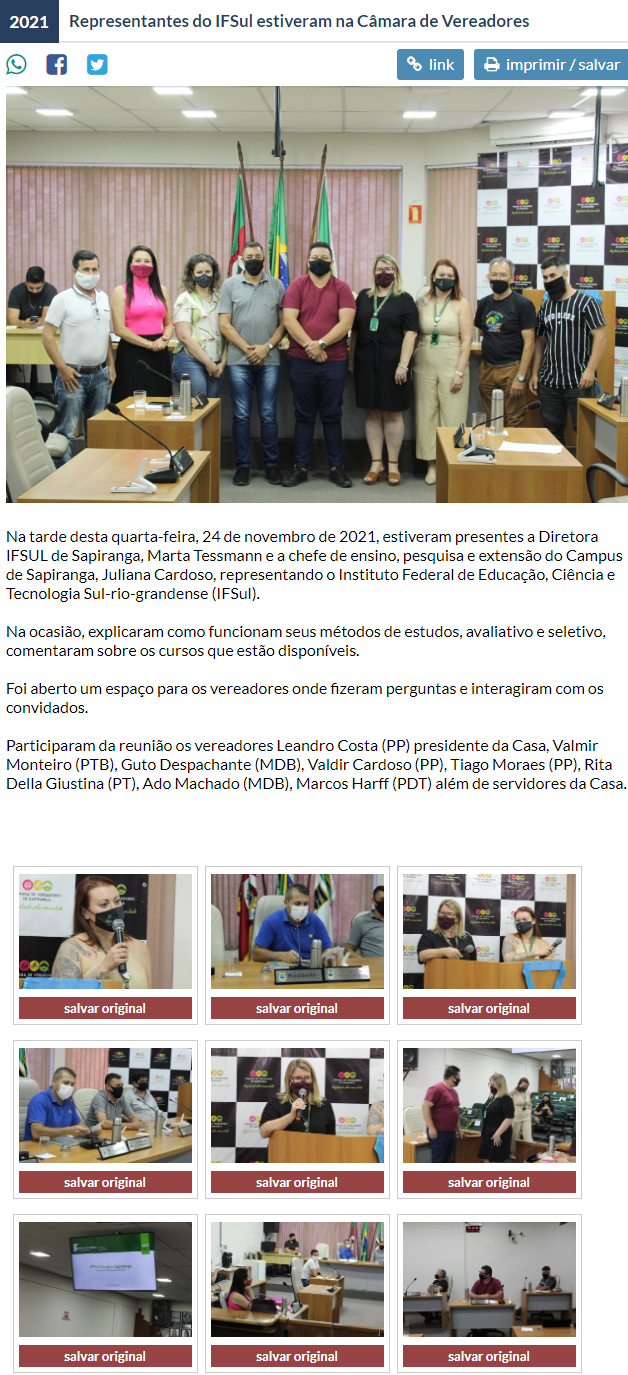 Câmara Municipal de Sapiranga - Representantes do IFSul estiveram na Câmara de Vereadores