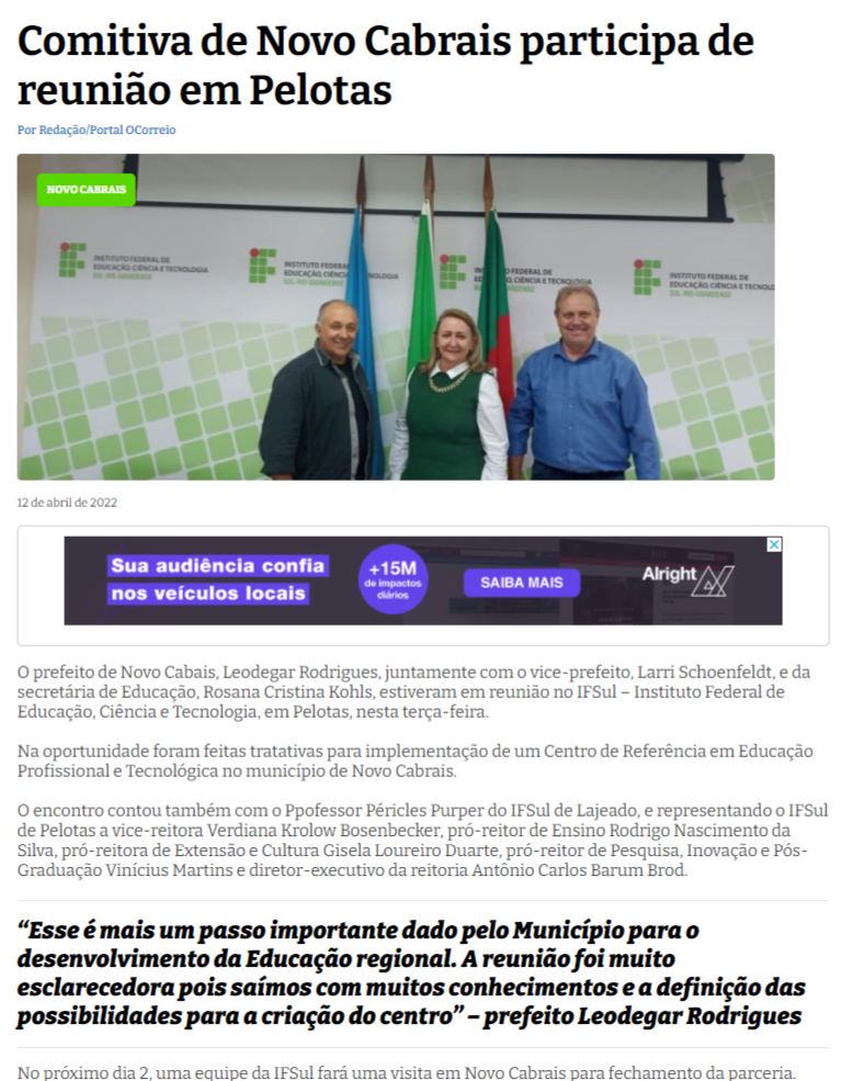 Portal OCorreio: Comitiva de Novo Cabrais participa de reunião em Pelotas