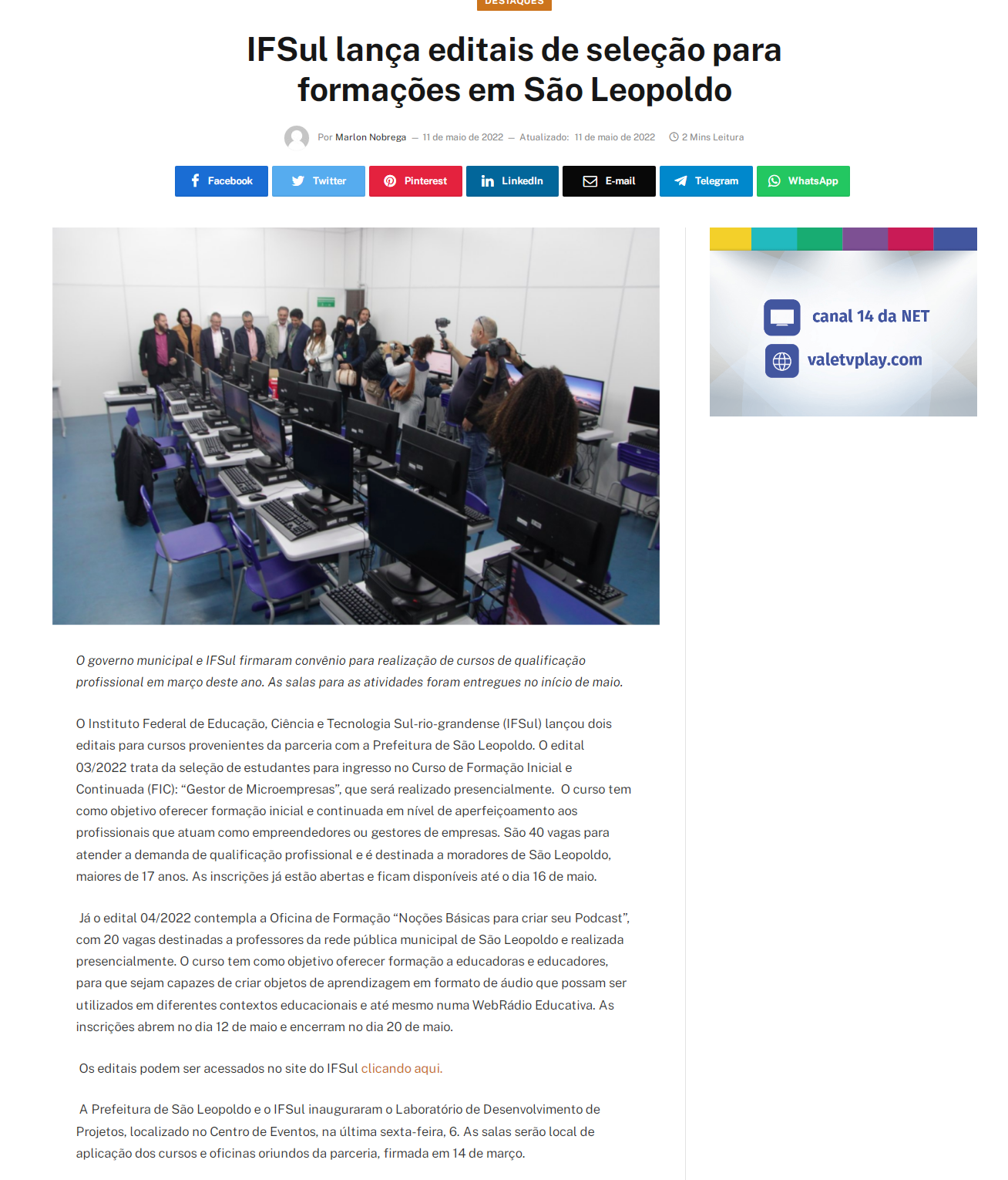 Portal Vale dos Sinos - IFSul lança editais de seleção para formações em São Leopoldo