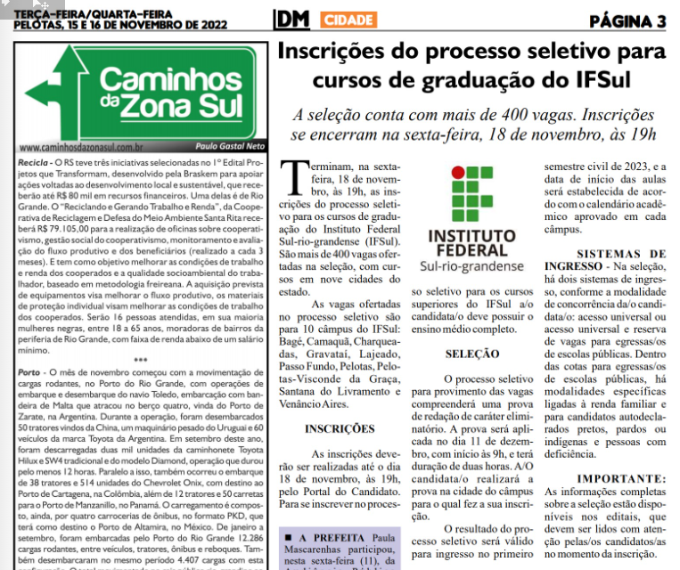 Diário da Manhã (Impresso: capa e página 3) - Processo seletivo para cursos de graduação