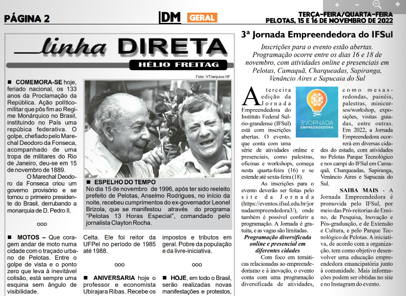 Diário da Manhã (Impresso: página 2) - 3ª Jornada Empreendedora do IFSul