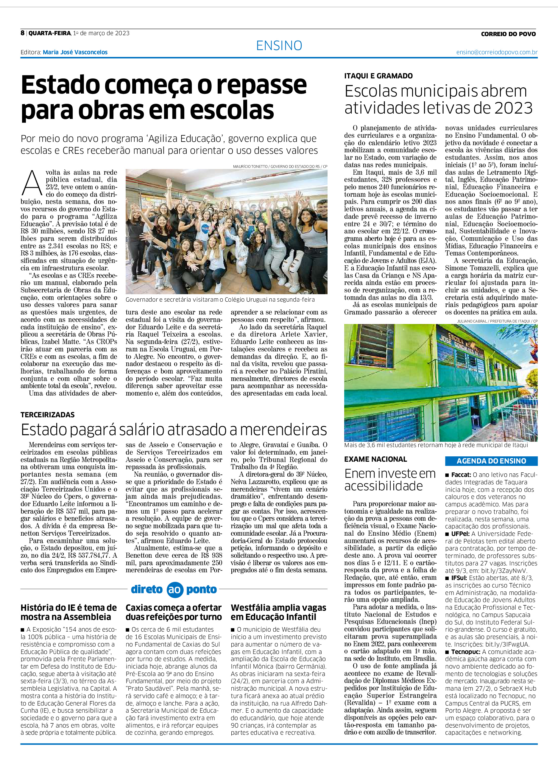 Correio do Povo - Agenda do ensino: curso técnico EJA do câmpus Sapucaia do Sul