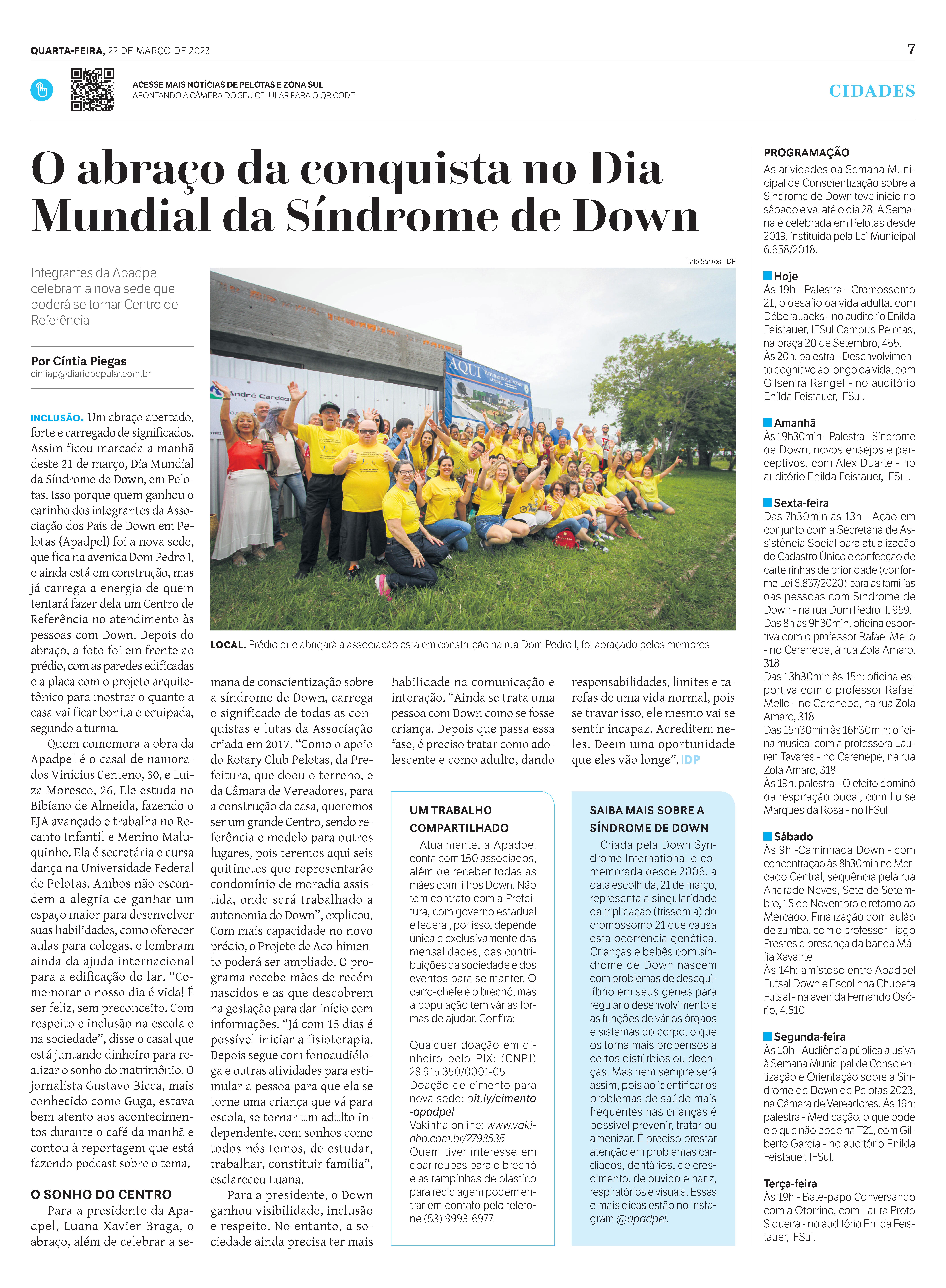Diário Popular - Atividades alusivas ao Dia Mundial da Síndrome de Down e palestra na Reitoria sobre burnout