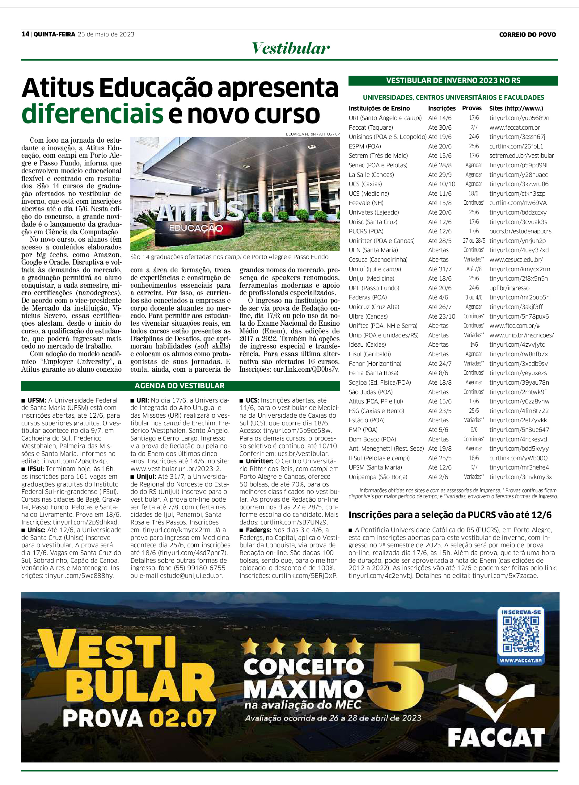 Correio do Povo - Vestibular IFSul para cursos superiores