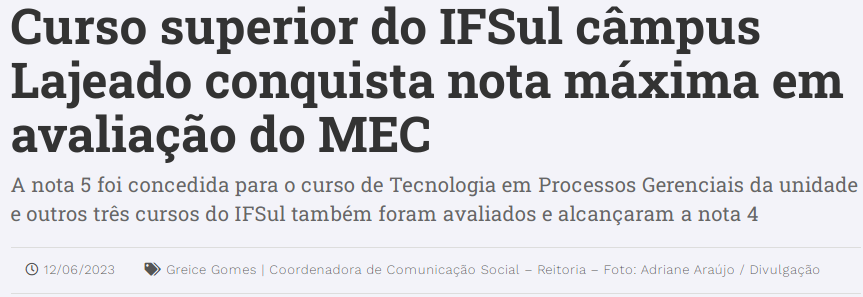 Portal de Camaquã - Curso superior do IFSul câmpus Lajeado conquista nota máxima em avaliação do MEC
