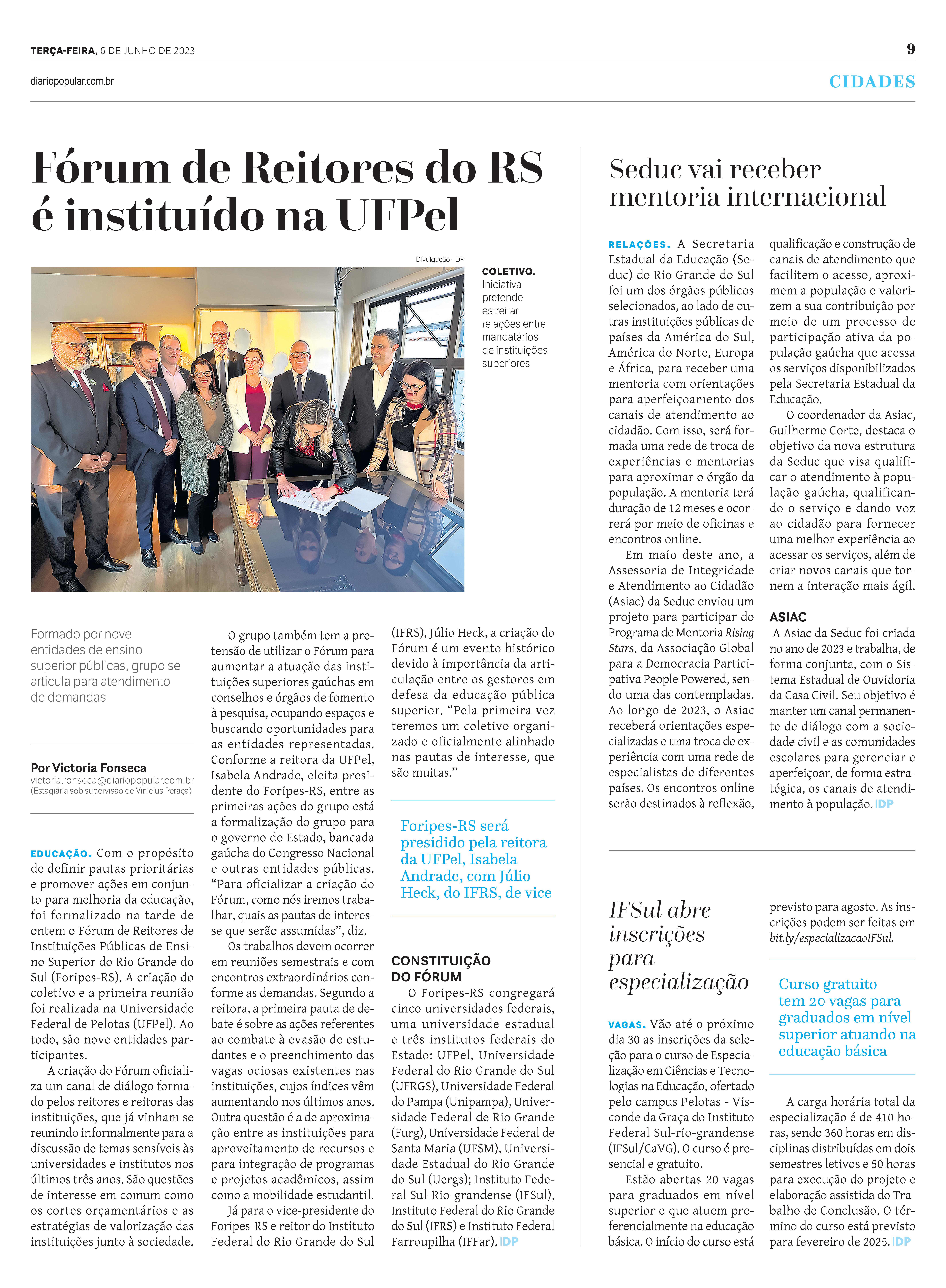 Diário Popular - Fórum de Reitores e especialização em Ciências e Tecnologias do câmpus Pelotas-Visconde da Graça