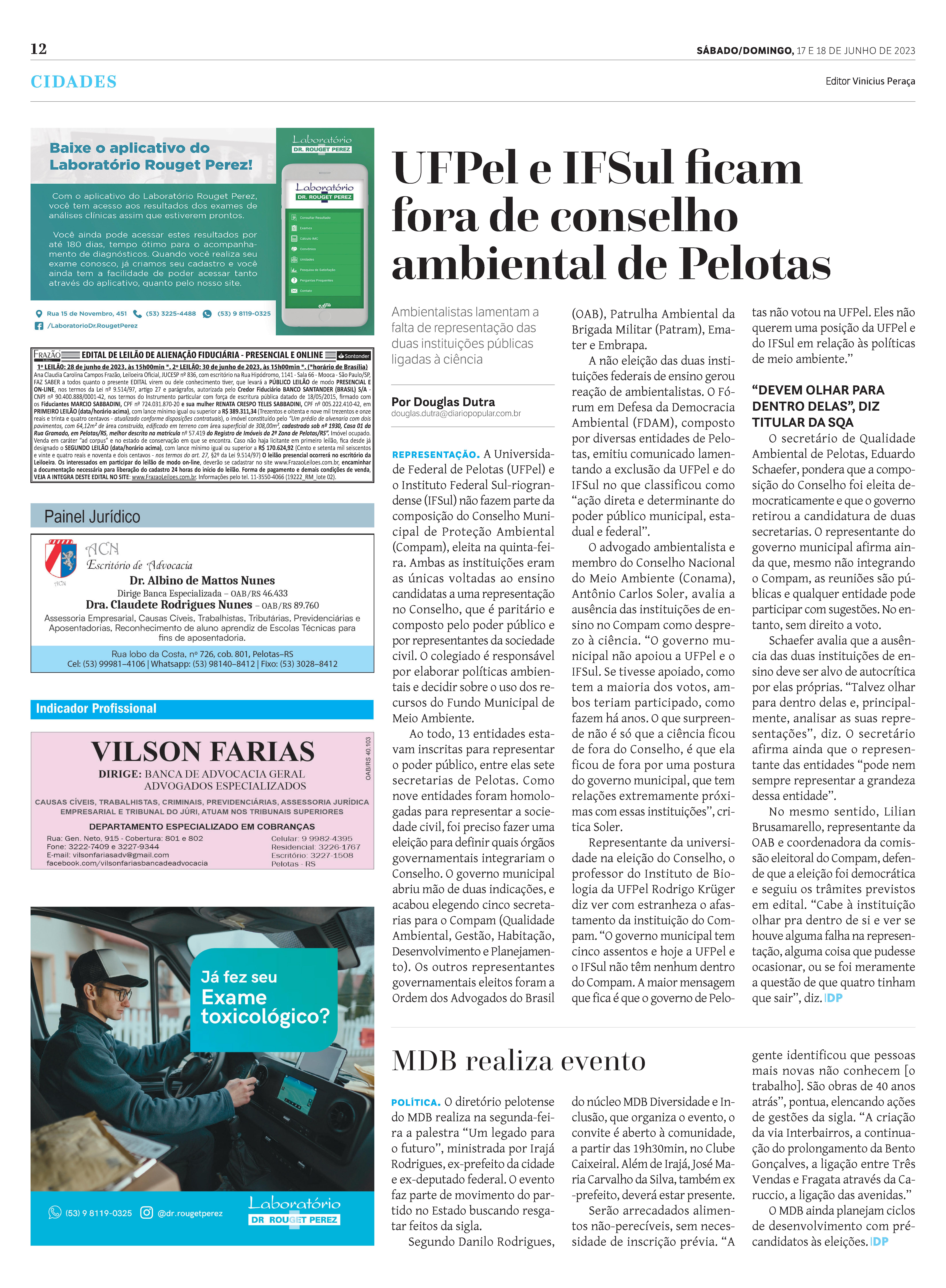 Diário Popular - UFPel e IFSul ficam fora de conselho ambiental em Pelotas