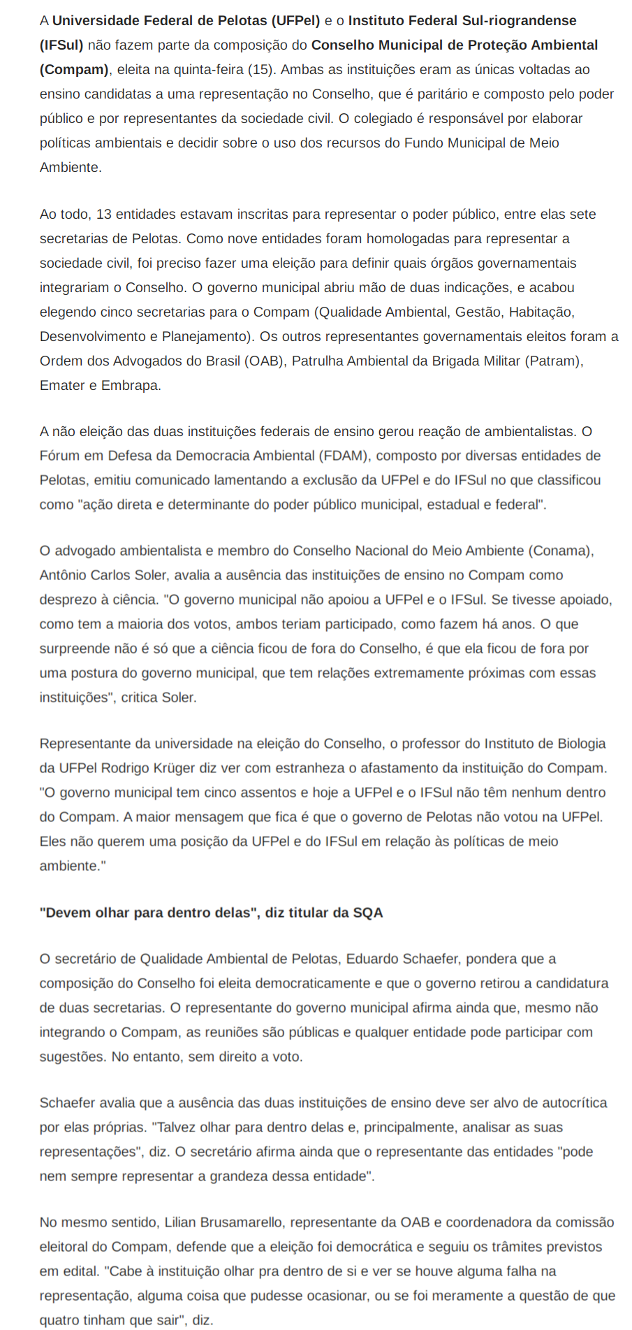 Diário Popular - UFPel e IFSul ficam fora de conselho ambiental de Pelotas