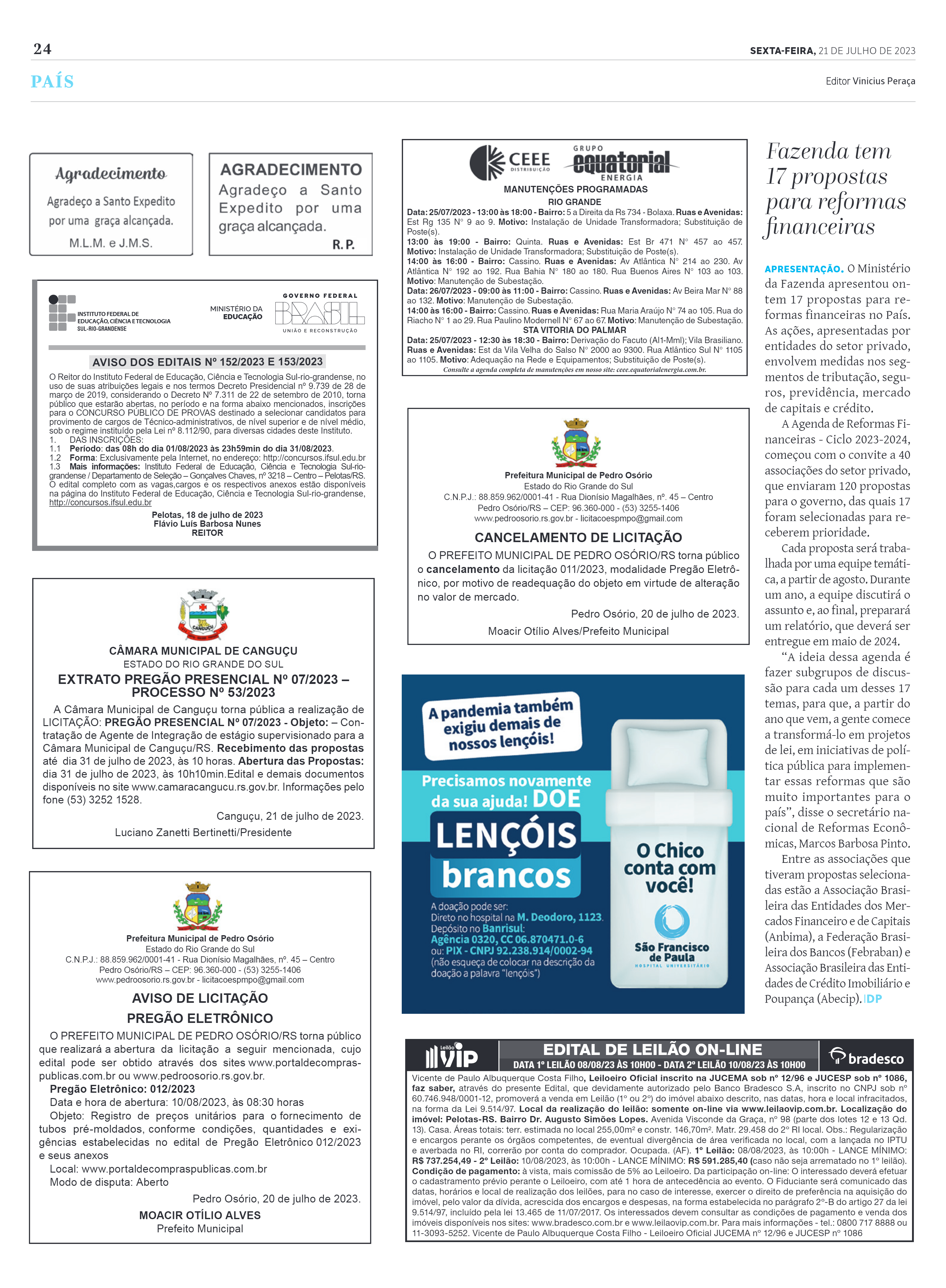 Diário Popular - Editais abertos para concursos de cargos Técnico-administrativos de nível superior e nível médio no IFSul
