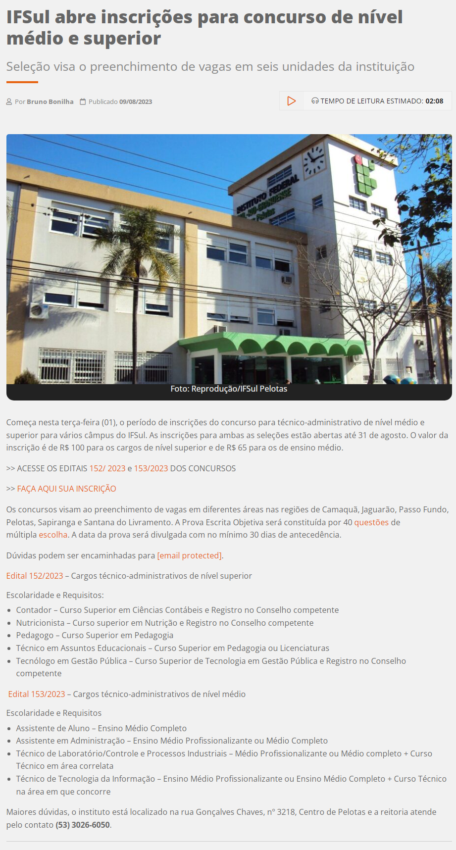 Clic Camaquã - IFSul abre inscrições para concurso de nível médio e superior