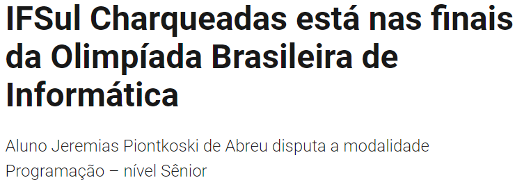 Portal de Notícias - IFSul Charqueadas está nas finais da Olimpíada Brasileira de Informática