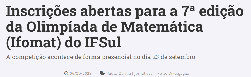 Portal de Camaquã - Inscrições abertas para a 7ª edição da Olimpíada de Matemática (Ifomat) do IFSul