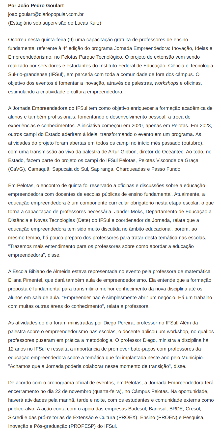 Diário Popular - 4ª Jornada Empreendedora do IFSul realiza primeira ação do ano em Pelotas