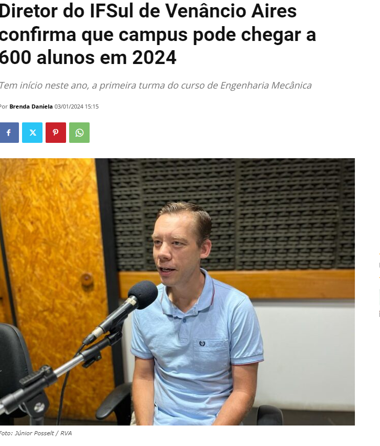 Portal RVA - Diretor do IFSul de Venâncio Aires confirma que campus pode chegar a 600 alunos em 2024