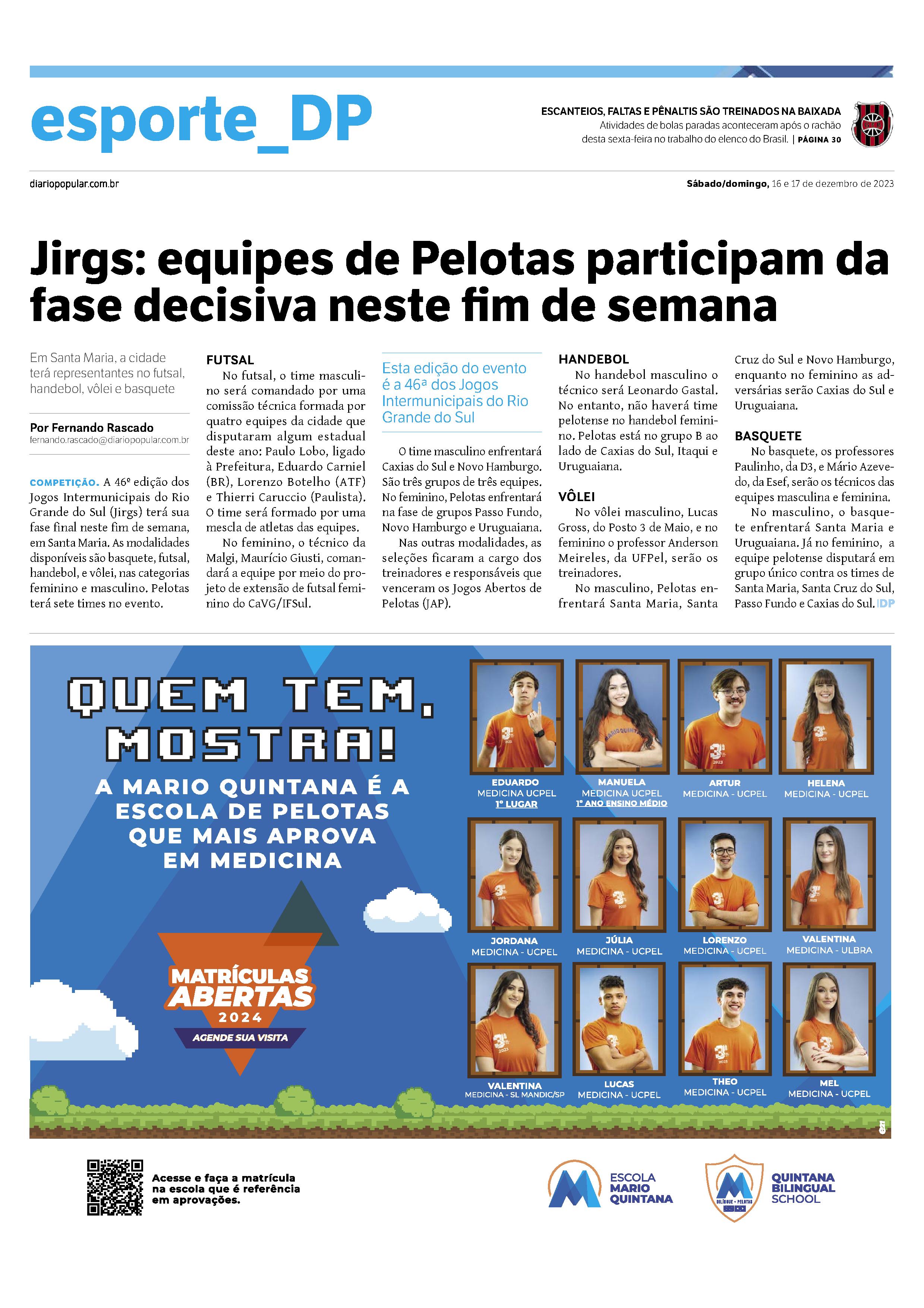 Diário Popular - Jirgs: equipes de Pelotas participam da fase decisiva neste fim de semana