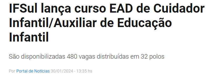 Portal de Notícias - IFSul lança curso EAD de Cuidador Infantil/Auxiliar de Educação Infantil