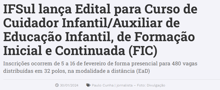 Portal de Camaquã - IFSul lança Edital para Curso de Cuidador Infantil/Auxiliar de Educação de Formação Inicial e Continuada (FIC)