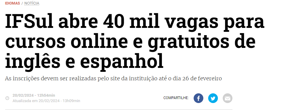 GZH - IFSul abre 40 mil vagas para cursos online e gratuitos de inglês e espanhol