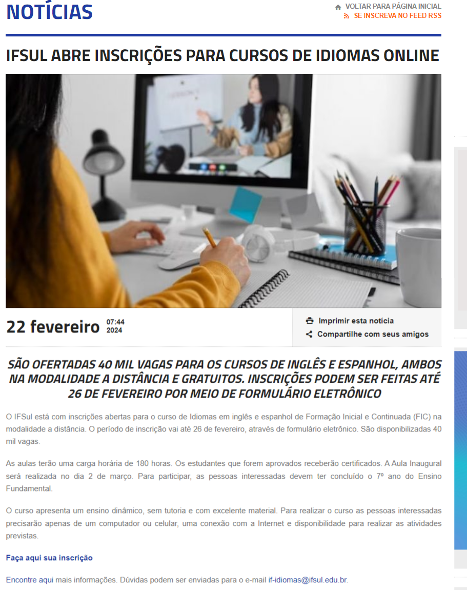 Diário da Manhã - IFSUL ABRE INSCRIÇÕES PARA CURSOS DE IDIOMAS ONLINE