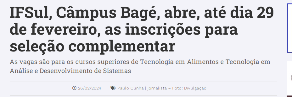 Portal de Camaquã - IFSul, Câmpus Bagé, abre, até dia 29 de fevereiro, as inscrições para seleção complementar