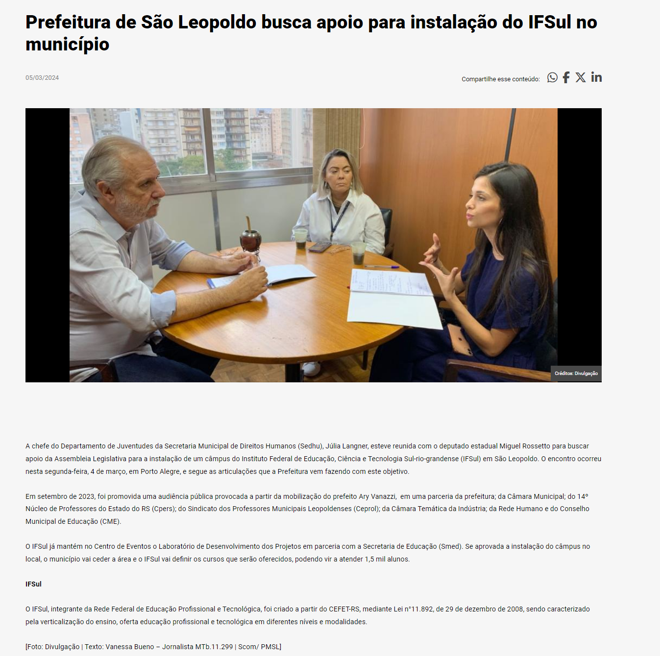 Prefeitura de São Leopoldo - Prefeitura de São Leopoldo busca apoio para instalação do IFSul no município