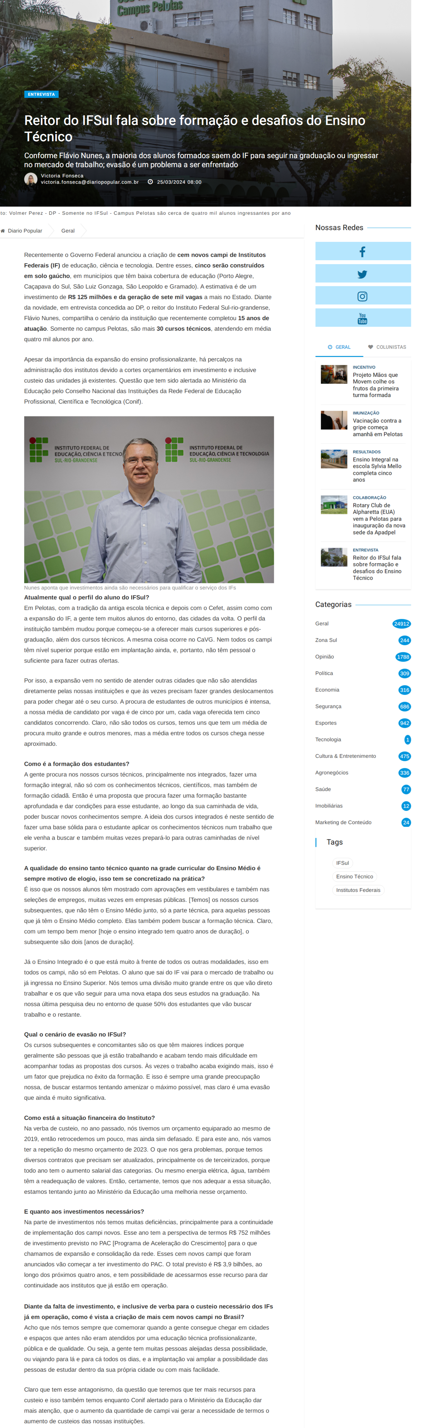 Diário Popular - Reitor do IFSul fala sobre formação e desafios do Ensino Técnico