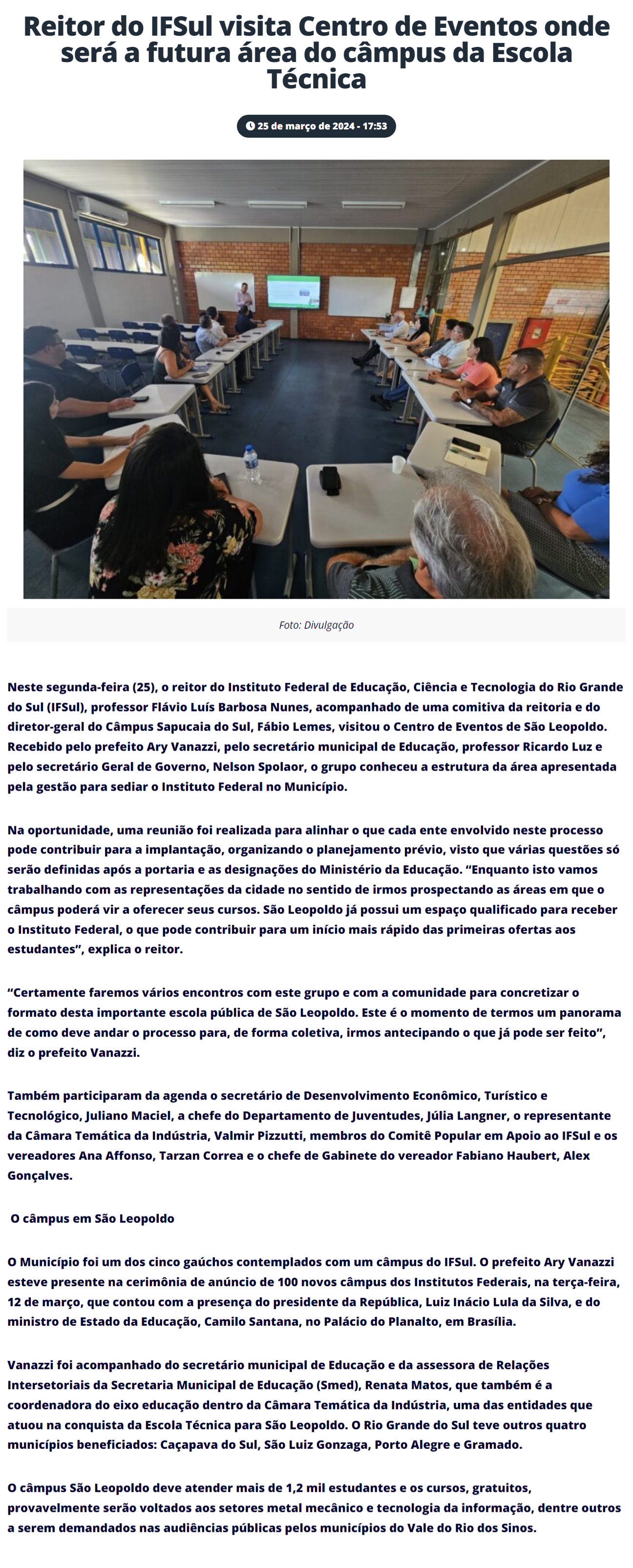 Berlinda News - Reitor do IFSul visita Centro de Eventos onde será a futura área do câmpus da Escola Técnica