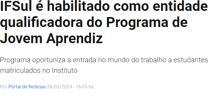 Portal de Notícias - IFSul é habilitado como entidade qualificadora do Programa de Jovem Aprendiz