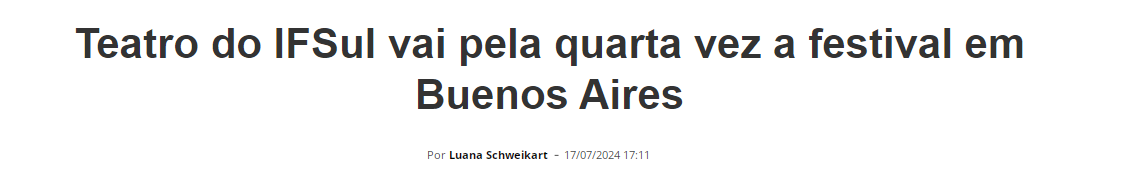 Folha do Mate -Teatro do IFSul vai pela quarta vez a festival em Buenos Aires