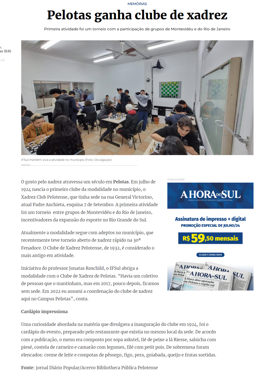 A Hora do Sul - Pelotas ganha clube de xadrez