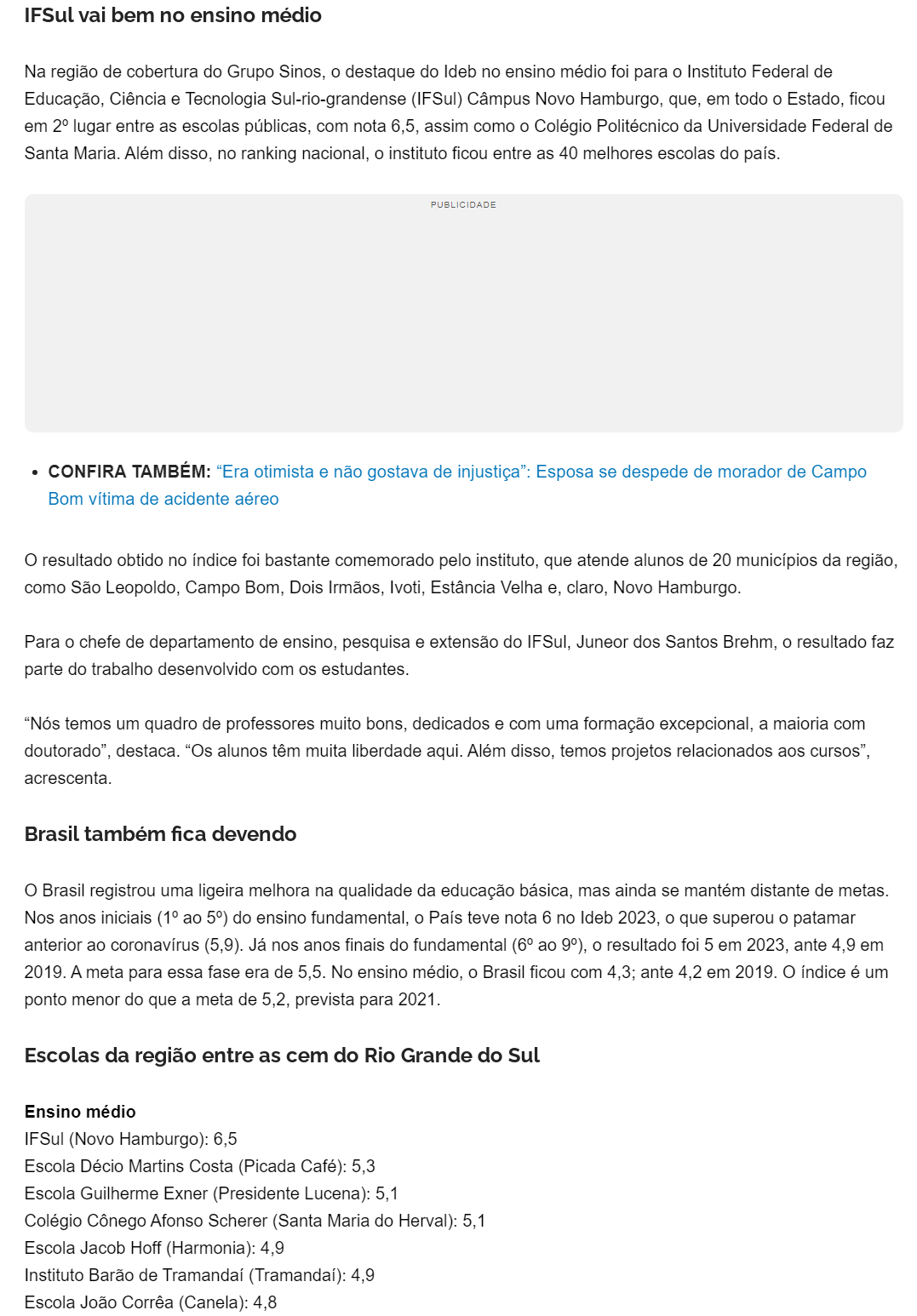 Jornal NH - Veja as escolas públicas da região que se destacaram em índice que avalia a educação básica
