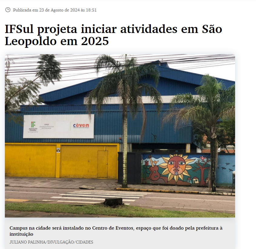 Jornal Cidades - IFSul projeta iniciar atividades em São Leopoldo em 2025