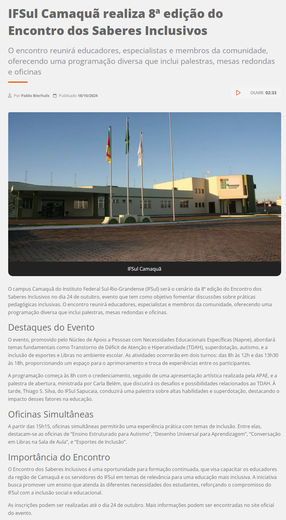 Clic Camaquã - IFSul Camaquã realiza 8ª edição do Encontro dos Saberes Inclusivos