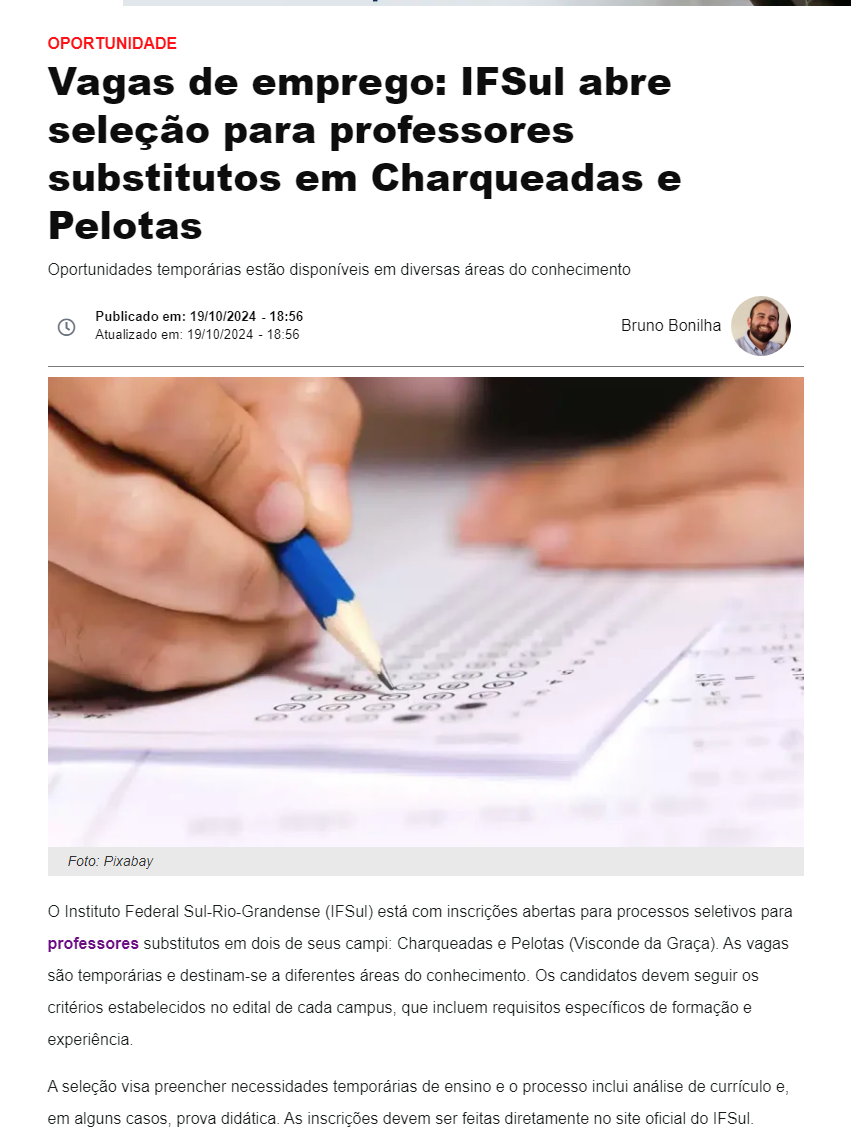 Rádio Acústica FM - Vagas de emprego: IFSul abre seleção para professores substitutos em Charqueadas e Pelotas