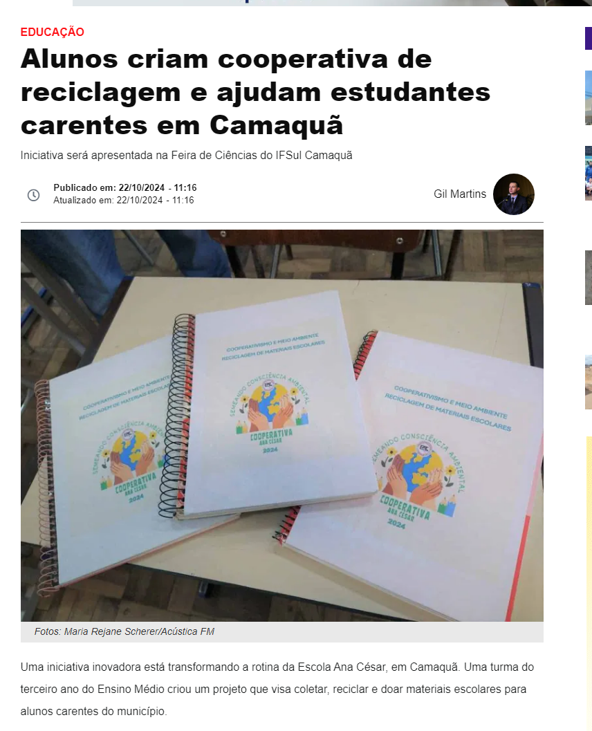 Rádio Acústica FM - Alunos criam cooperativa de reciclagem e ajudam estudantes carentes em Camaquã