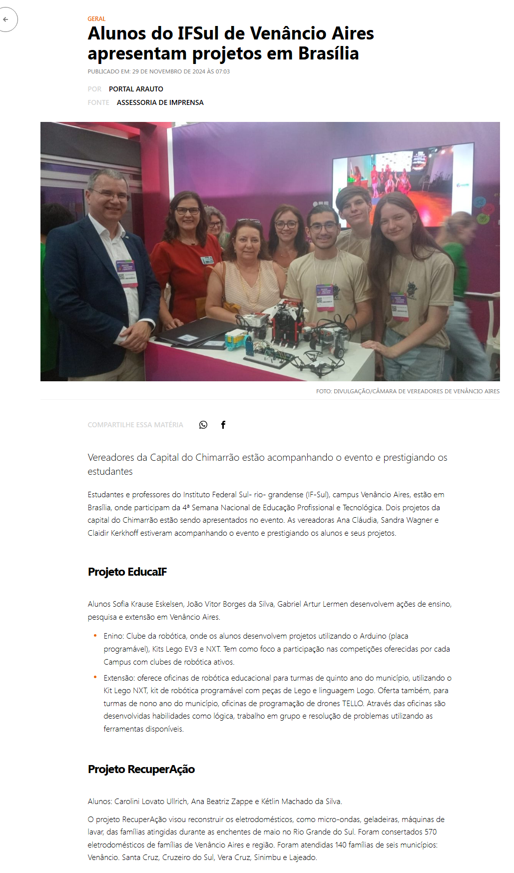 Portal Arauto - Alunos do IFSul de Venâncio Aires apresentam projetos em Brasília