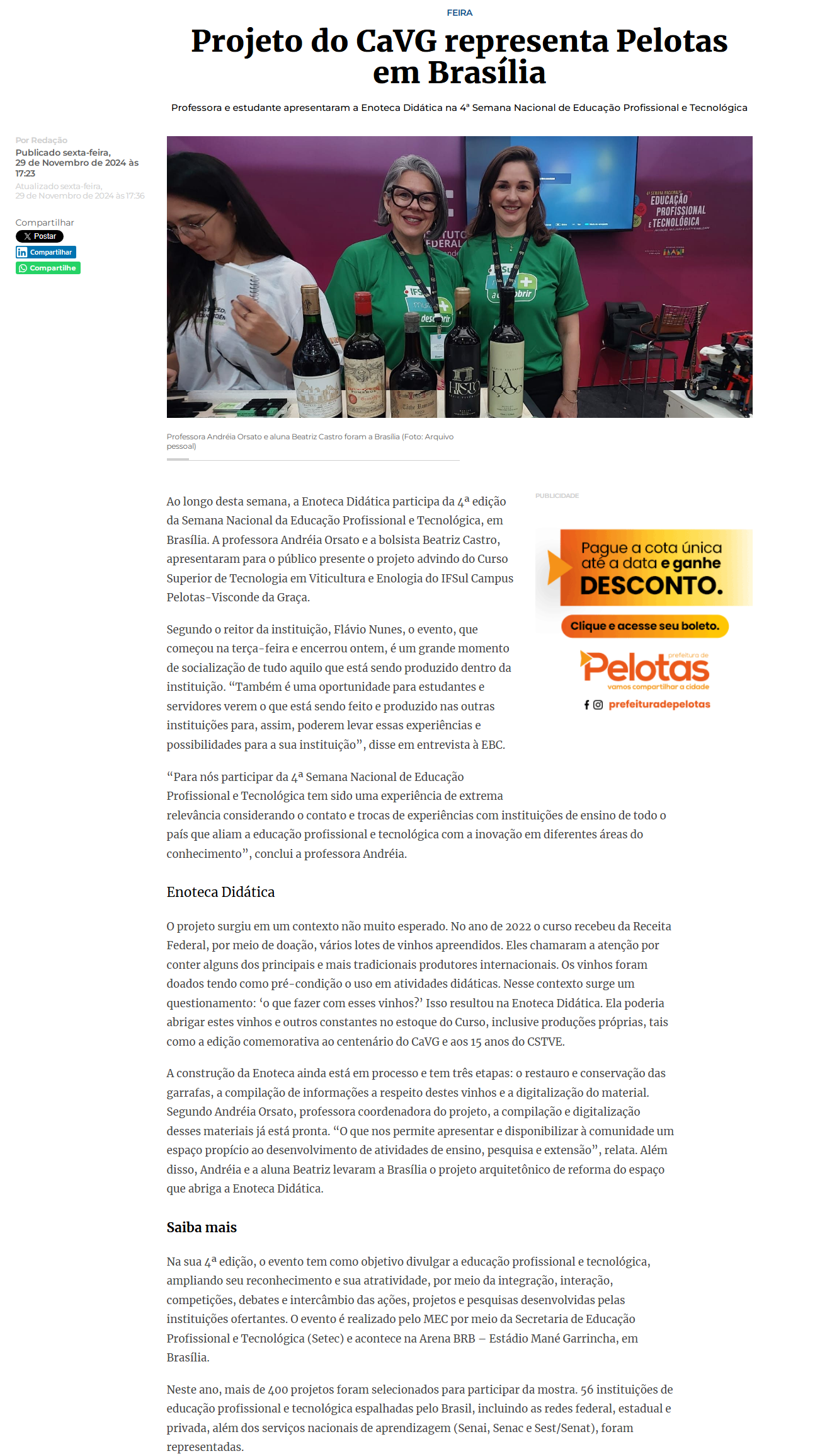 A Hora do Sul - Projeto do CAVG representa Pelotas em Brasília