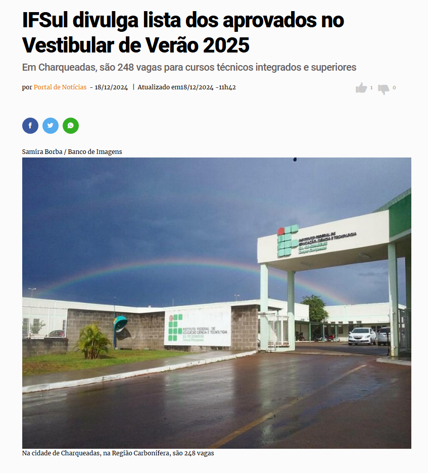 Portal de Notícias - IFSul divulga lista dos aprovados no Vestibular de Verão 2025