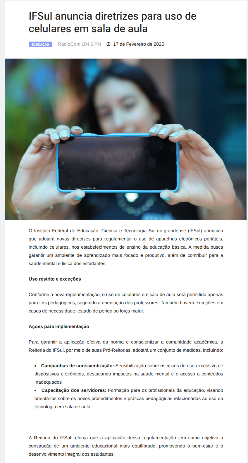 RádioCom - IFSul anuncia diretrizes para uso de celulares em sala de aula